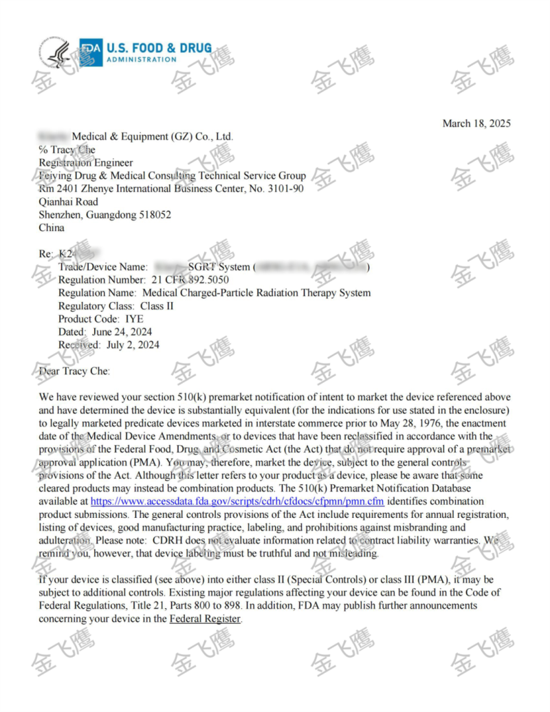随着技术的进步和数字化转型的加速,医疗器械行业正经历着前所未有的变革。然而,网络攻击的增加和数据泄露事件的频发,医疗器械的网络安全问题也日益凸显。因此,各国监管机构对网络安全的审查力度不断加码,要求企业从设计到售后全生命周期内确保设备的安全性和可靠性。 而在这一全球趋势中,美国FDA对网络安全的要求更是以“零容忍”态度走在前列:风险预判、漏洞管理、数据加密、模拟攻击测试……任何一项疏漏都可能导致认证失败。 3月18日,betway必威西盟体育官网入口辅导的广州一家企业的SGRT系统(表面引导放射治疗系统)成功获批FDA 510(k),此类产品安全等级较高,FDA在对其上市申报资料审查较为严格,这无疑对资料编写的的专业能力提出了极高的要求。而在这一案例中,特别值得一提的是,我们辅导客户编写的网络安全资料一次性通过,极好地彰显了我们对FDA网络安全要求的精准把握。