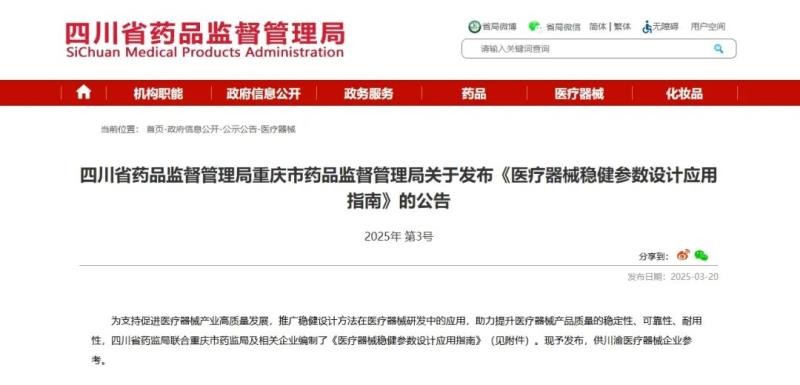 近日,四川省药监局与重庆市药监局联合发布《医疗器械稳健参数设计应用指南》(以下简称《指南》),以推广稳健设计方法在医疗器械研发中的应用,助力提升医疗器械产品质量的稳定性、可靠性、耐用性。《指南》共从稳健设计概述、基本原理、稳健参数设计步骤、基于minitab的稳健参数设计过程及附录对稳健设计相关内容进行详细阐述。