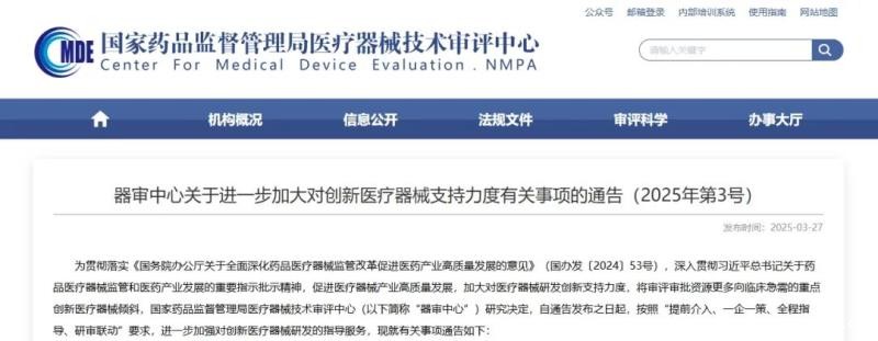 近日,国家药监局器审中心发布《关于进一步加大对创新医疗器械支持力度有关事项的通告》,决定自通告发布之日起,按照“提前介入、一企一策、全程指导、研审联动”要求,进一步加强对创新医疗器械研发的指导服务,以促进医疗器械产业高质量发展,加大对医疗器械研发创新支持力度,将审评审批资源更多向临床急需的重点创新医疗器械倾斜。有关事项通告如下: