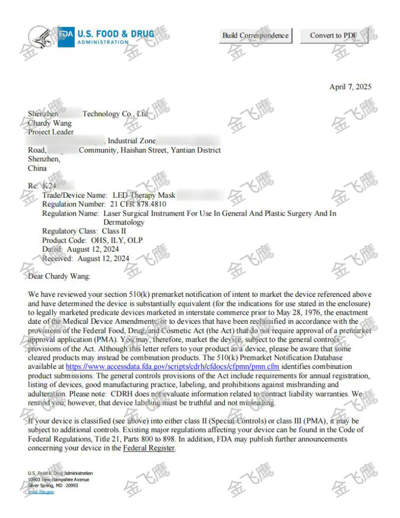 获批LED面罩的510(k)