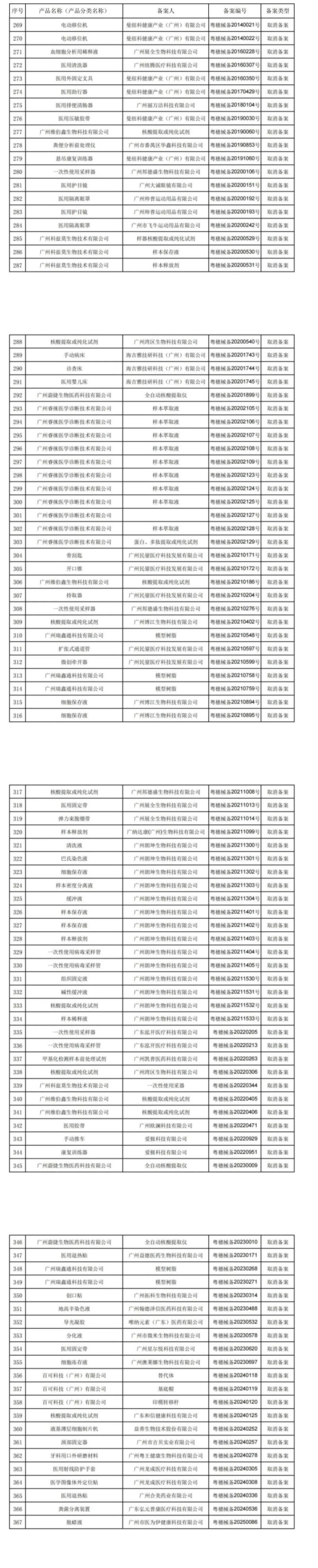 近日,广州市市场监督管理局发布《2025年度第一季度第一类医疗器械产品备案目录的通告》,其中共有97个产品首次备案,171个产品变更备案,99个产品取消备案,我们将取消备案的产品名单汇总如下: