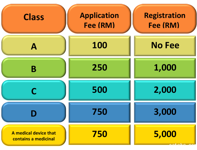 MDA审核时间视情况而定,大约需要1至6个月。不同类别的产品收费不同,具体费用参见下图。在注册通过之后,获得的注册证有效期为五年。