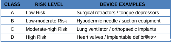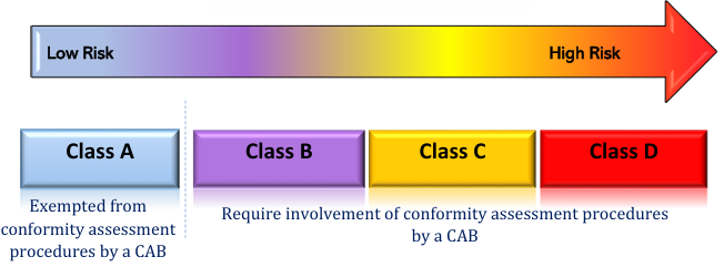 马来西亚采用基于风险的分类系统,将医疗器械分为 A、B、C、D 四个等级: