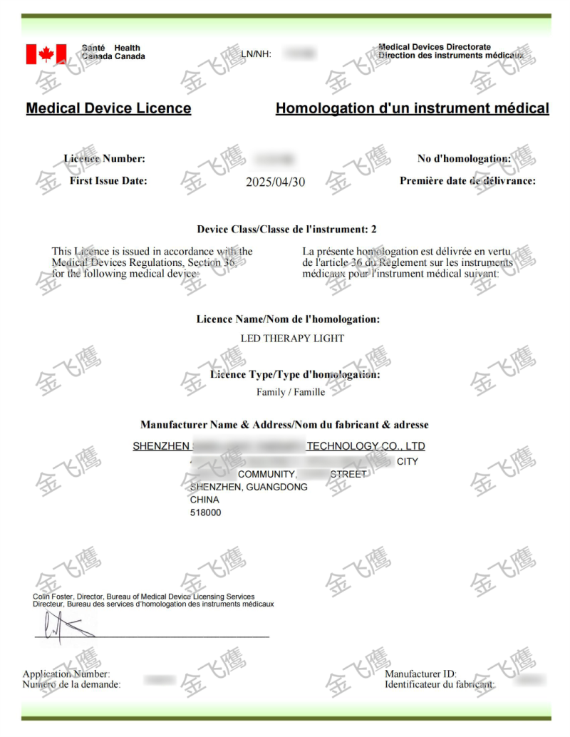 以本次获证的LED理疗灯(Ⅱ类)为例,获取MDL证书的大致流程如下:申请MDSAP体系证书(可同步开展产品检测)→填写MDL申请表/准备相关文件(此环节可申请小企业资质,具体条件可联系客服咨询)→文件递交至Health Canada并付款→申请MDL证书(证书无固定的有效期,但需缴纳年度更新费用),申请通过后便可在加拿大HC官网查询到。
