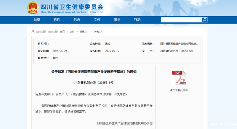 近日,四川省医药健康产业链协同推进机制办公室发布《四川省促进医药健康产业发展若干措施》(以下简称《若干措施》),共从5个方面提出了21条措施。