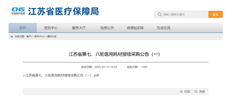 申报路径:登录江苏省招采子系统-耗材招采管理-带量采购(新)-省级带量采购-省第七、八轮接续。
