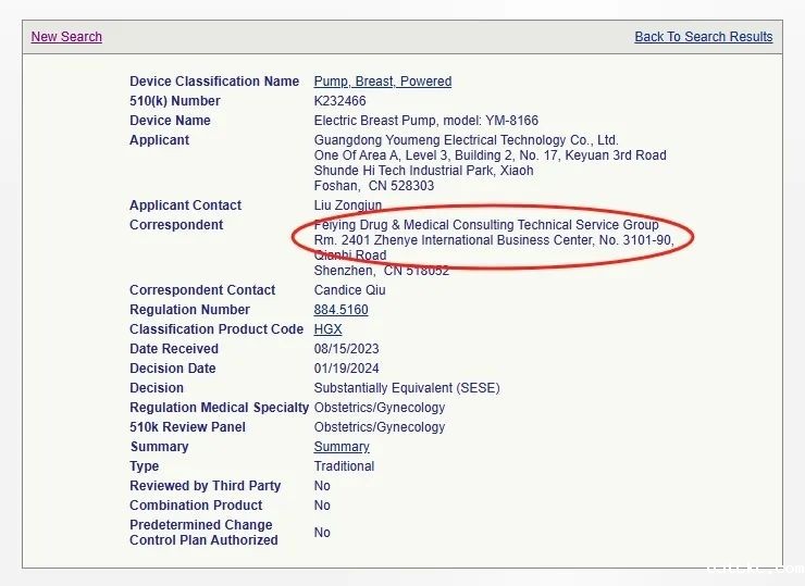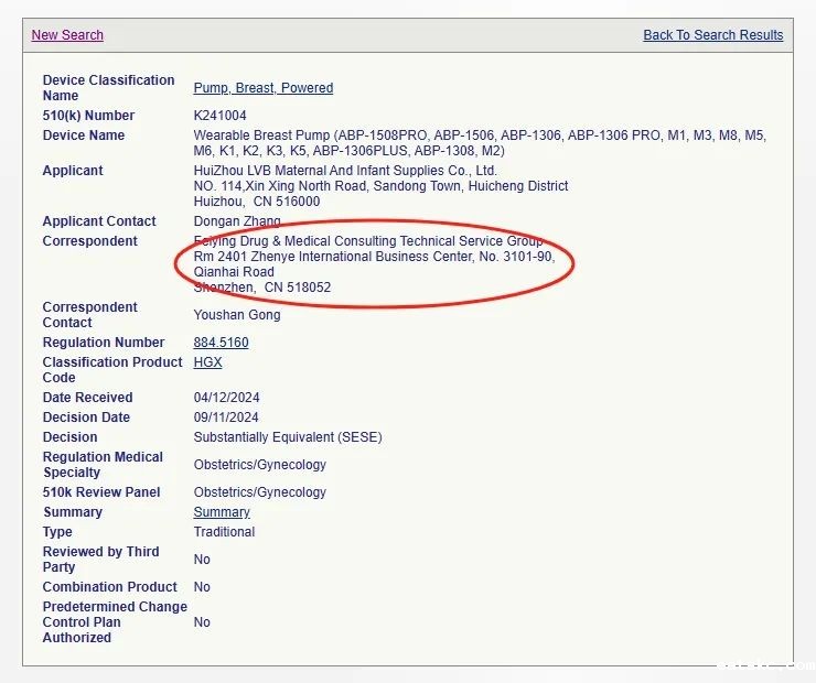 我们在FDA 510(k)数据库用产品代码HGX进行检索,近两年来由betway必威西盟体育官网入口申报并作为官方Correspondent的有如下企业的吸奶器产品: