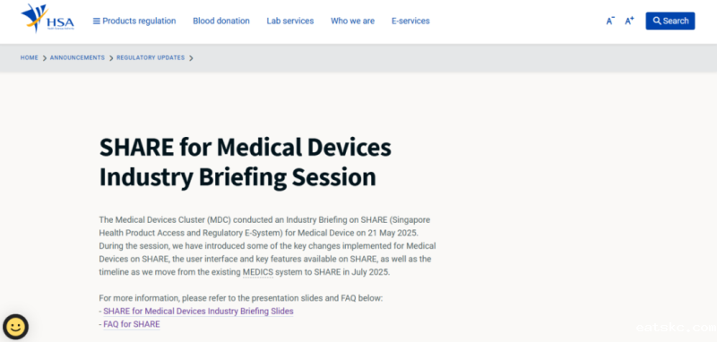 近日,新加坡HSA发布了有关医疗器械注册提交新系统SHARE(Singapore Health Product Access and Regulatory E-System)的公告,介绍了SHARE与原有MEDICS系统相比的一些关键变化、SHARE上可用的用户界面和主要功能,同时给出了有关SHARE逐步推进使用的关键时间线。
