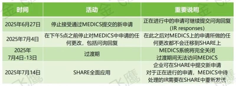 最后,我们给大家附上SHARE系统应用的重要时间线,相关企业记得在指定时间内完成所有必要操作,以免耽误产品上市进程: