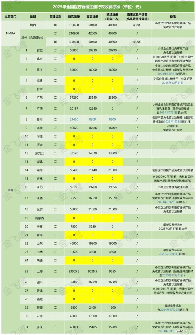 最后依然附上2025最新版【全国各省(市)医疗器械注册行政收费标准】(根据各省政务服务网办事指南及各药监局最新公开的收费标准综合整理,若有疏漏,欢迎各地朋友指正),具体见下图,大家记得收藏备用哦!