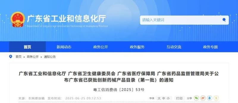 近日,广东省工业和信息化厅、广东省卫生健康委员会等四部门联合发布《广东省已获批创新药械产品目录(第一批)》,并要求省内各公立医疗机构按照《关于进一步推动广东生物医药产业高质量发展的行动方案》等有关要求,加快推动创新药械入院应用。