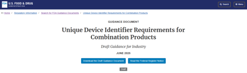近日,FDA发布有关组合产品UDI要求的指南文件草案Unique Device Identifier Requirements for Combination Products,该指南旨在明确医疗器械唯一标识(UDI)要求如何适用于含器械组件的组合产品。指南草案详细阐述了此类组合产品在UDI标签要求及全球唯一器械标识数据库(GUDID)信息提交方面的监管规定、实施建议和最佳实践,并通过假设性案例具体说明如何满足相关UDI合规要求。