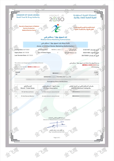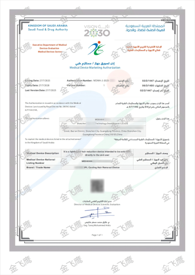 素有“中东土豪”之称的沙特阿拉伯,虽然经济规模和人均收入世界排名靠前,但却是医疗器械产品极度依赖进口的一个国家。因此,近年来,沙特阿拉伯也是国内医械企业“出海”战略的一个重要目标市场。在脱毛仪沙特注册领域,我们给大家展示7月26及27日新鲜出炉的两张证,更多沙特注册案例,可点击右侧文章☞美容面罩沙特上市许可。