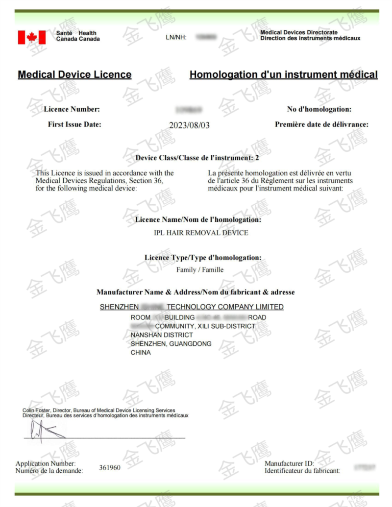 2023年,我们辅导的深圳一家企业成功取得脱毛仪的加拿大MDL证书,当时是按第二类医疗器械产品申请的,但值得注意的是,如今在加拿大,脱毛仪已被纳入第三类医疗器械管理了。