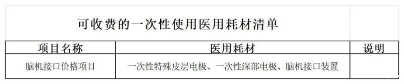 ↑ 可收费的一次性使用医用耗材清单(如一次性特殊皮层电极、一次性深部电极等)