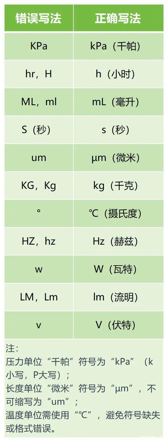 国际标准单位(SI单位)的书写需严格遵循规范,避免因符号、大小写错误导致技术文件失效。部分示例如下: