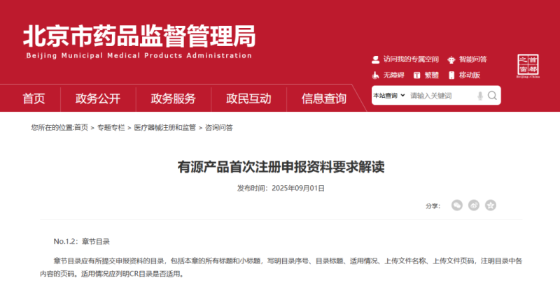 9月1日,北京市药监局发布《有源产品首次注册申报资料要求解读》(以下简称《要求》),我们将其部分内容转载如下: