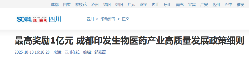 近日,《成都市促进生物医药产业高质量发展若干政策措施实施细则》正式印发,为成都生物医药产业发展注入强劲动力。这份细则针对药械研发创新、临床研究质效和企业发展壮大三大关键环节,推出了13类专项支持政策,明确各项政策的支持对象、申报条件和支持标准,为企业提供清晰指引。 其中最引人注目的是对1类创新药的奖励措施:按临床前研究、Ⅰ期、Ⅱ期、Ⅲ期临床试验四个阶段研发投入的20%分别给予最高300万元、300万元、500万元、700万元奖励。若纳入突破性治疗药物程序并首次取得药品注册证,还可再获得100万元奖励,单个企业每年最高奖励可达1亿元。